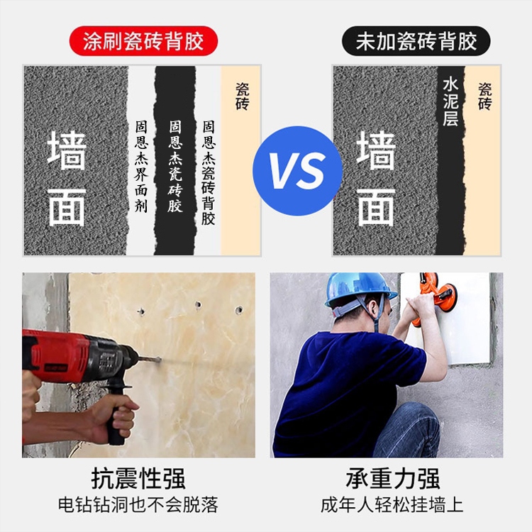 固恩杰瓷磚背膠柔韌性好,硬化收縮小,與水泥基粘結(jié)材料相容性強(qiáng),粘結(jié)牢固。 用于室內(nèi)外適用于砼框架橫板拆除后的光滑改造;低吸水率的玻化磚、仿古磚、文化石、拋光磚、人造石、天然大理石、瓷片等上墻;防水泥批蕩扇灰脫落;防外墻漆開裂變黃;老墻